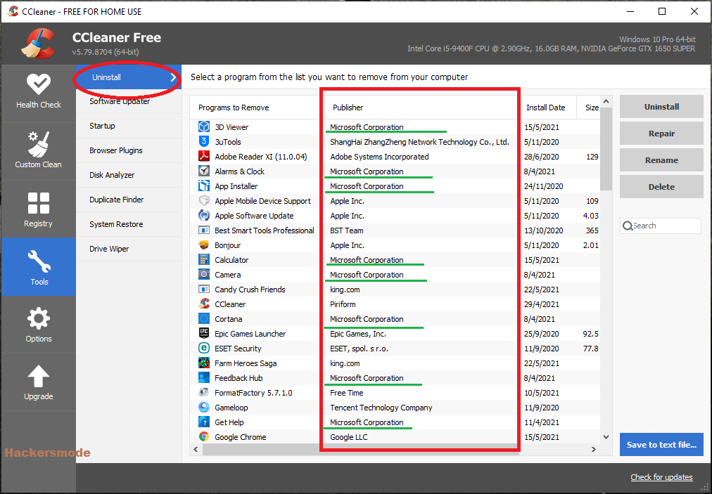 So langkah seterusnya adalah ditangan anda sendiri untuk mencari yang mana satu software yang tidak penting selain dari Microsoft Corporation. Anda boleh uninstall sendiri software tak terpakai itu melalui CCleaner ni. So tak perlu susah-susah dah nak pergi ke Control Panel bagai.. huhu